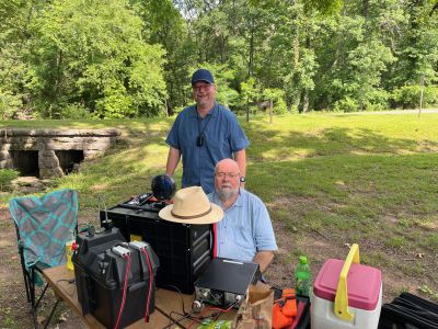Danny AG4DW set up on the west end at the picnic tables. Jody W4LWC assisted him with logging duties. Danny made 91 total contacts. 74 SSB contacts and 7 FT8 contacts on 20 meters, then went to 15 meters FT8 and made 10 more including one DX to Spain. Allen KN4FKS set up on the east end of the parking lot under the shade trees. He had 29 SSB contacts, 26 on 40 meters and 3 on 20 meters with a total of 9 Park to Park contacts. Max N4NWD completed his first activation the hard way. He used his ICOM-705 QRP rig and was using 5 watts. He made 1 SSB contact on 40 meters and 9 on 20 meters for a successful POTA activation. Welcome to the 'dark side' Max. POTA has now claimed a new believer.  John KB4QXI set up around the corner at the Wilder tower parking lot to avoid the heavy RF with us. He ran SSB on 20 meters for ?? contacts. We even got a Park to Park with him.